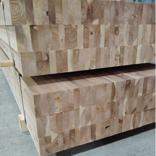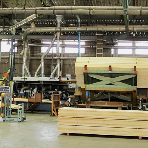 製材された材料を選別・接着・プレスし、中大断面構造材を製造しています。