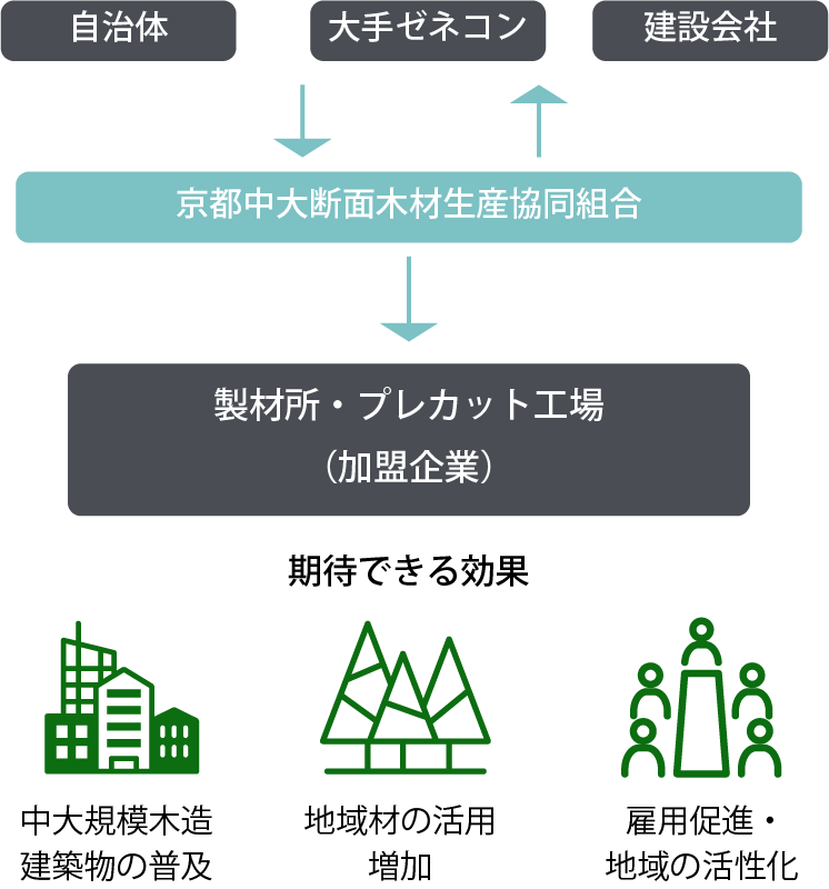 京都府内の木材事業者が連携し、中大規模木造建築の普及と地域材の活用を推進しています。