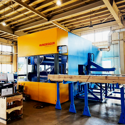 舞鶴プレカット工場では、ドイツ製「HUNDEGGER Robot MAX」を導入。